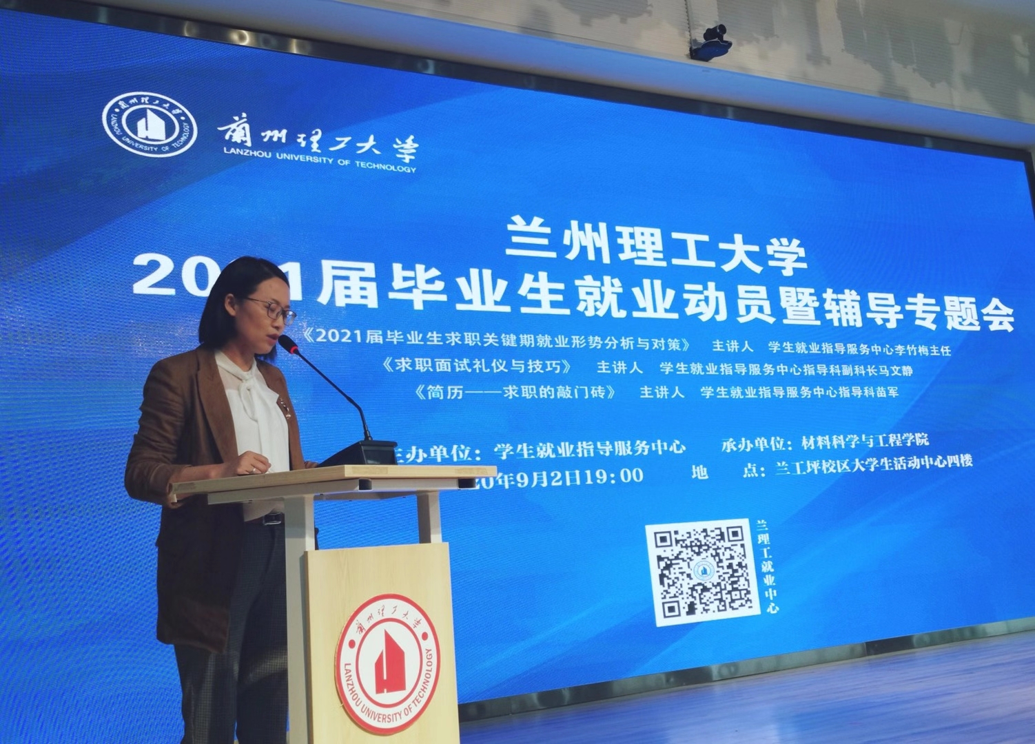 面对2021届毕业生在后疫情影响下的严峻就业形势,js33333金沙线路检测于9月3日下午19点整,为2017级所有毕业生在兰工坪校区老员工活动中心四楼召开了以“2021届毕业生年级大会暨就业指导”为主题的年级大会。员工就业指导服务中心主任李竹梅,公司副书记王祎敏,副经理李慧及辅导员老师杨文婷、李卫红一同出席此次会议,本次会议在公司副书记王祎敏老师的主持下正式召开。