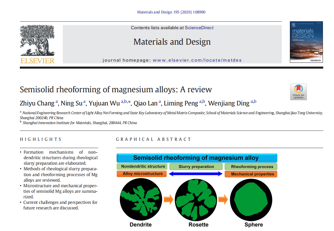 近日,国际著名杂志《Materials and Design》2020年10月即将出版第195卷在线发表“Semisolid rheoforming of magnesium alloys: A review”(https://doi.org/10.1016/j.matdes.2020. 108990)综述文章,对公司李元东教授团队提出的镁合金半固态制浆技术----“自孕育法”进行了全面评述。
