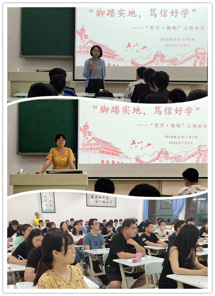 7月8日晚,js33333金沙线路检测2018级冶金工程2班在彭家坪校区观成楼302教室开展“脚踏实地,笃信好学”主题班会,特别邀请js33333金沙线路检测副书记王祎敏、冶金工程2班班主任张露尹老师参加,会议由班长康建强主持。