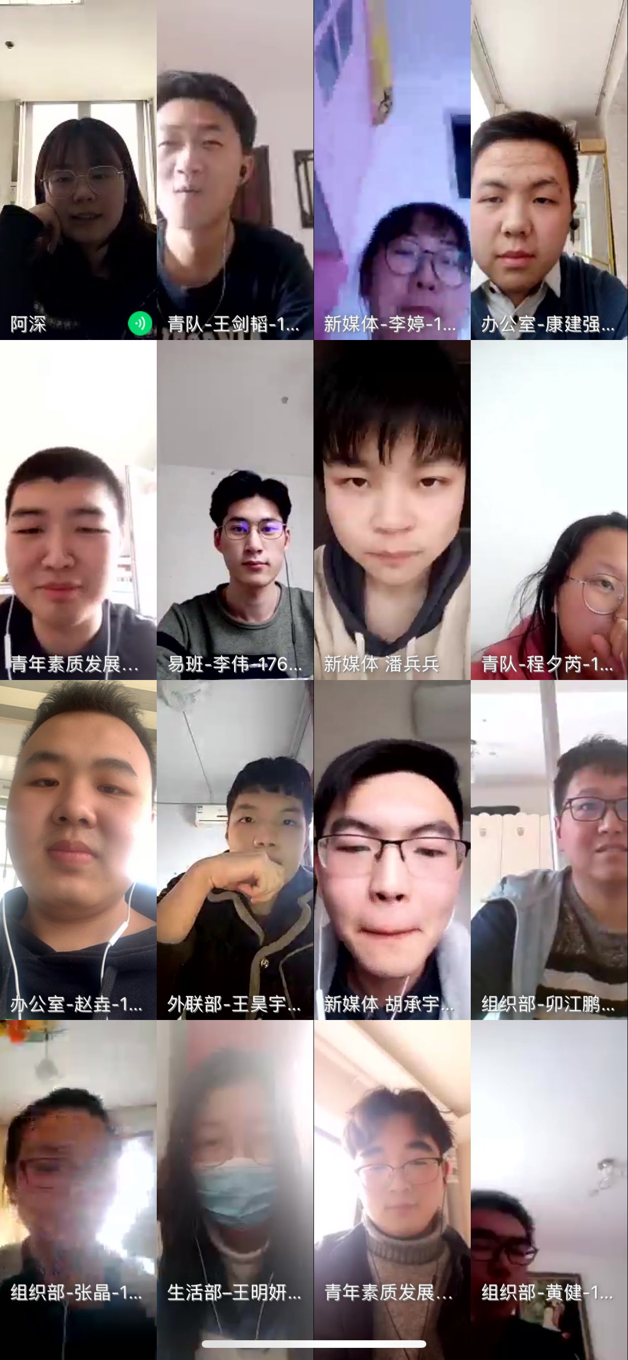随后,团委、员工会各部门对照团委年度重点工作计划作出规划研讨。就近期工作各部门也提出了宝贵的意见,新媒体中心着重主抓网络思想政治阵地建设,青年志愿者服务大队利用中华传统节日清明节组织开展“抗疫英烈”线上悼念活动,体育部组织员工开展“今天你胖了吗?” 线上运动打卡活动,青年素质发展中心做好员工第二课堂成绩单分析并集中审核审批申报类学时申请工作,社团管理中心做好对员工发布创新创业相关信息,并协调公司培育优秀双创项目,生活权益部策划开展“家务小能手”晒图活动……