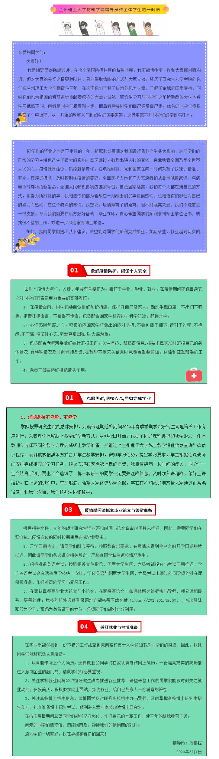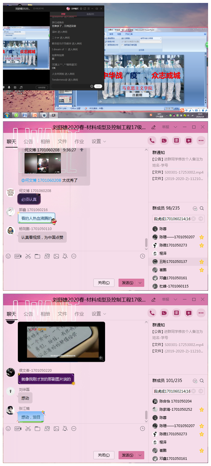 在这个没有硝烟的战场,我们这群可爱的“导员”、“老班”义无反顾地选择扛起自己的责任与担当,和三千多材料学子齐心“战疫”。没有冬天不可逾越,没有春天不会来临,让我们一起加油!