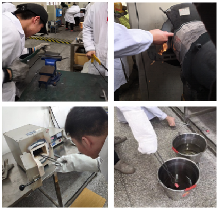 专业组织16级112名本科生参加了热处理工艺设计与组织性能教学实践活动。在实践教学中,同学们分组针对碳素结构钢(20钢)、低合金结构钢(40Cr)、轴承钢(GCr15)等不同种类金属材料的使用性能,结合文献和工艺手册进行计算和分析,从而设定相应材料的热处理工艺,并对热处理前后合金的组织和硬度进行了观察和测式,分析了热处理工艺(正火,退火,回火和淬火)对合金组织和性能的影响。通过本次实践,员工掌握了中温箱式热处理炉、金相显微镜和硬度计等实验设备的使用方法,加深了其对热处理原理与工艺基础知识的理解,提高了员工对热处理工艺、金相组织和材料性能的认识,培养了员工解决复杂工程问题的能力,同时也进一步提高了员工的团队协作及沟通能力。