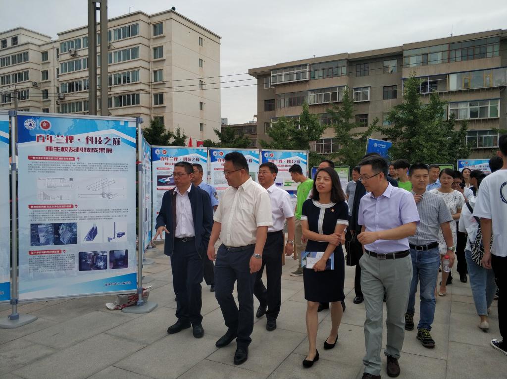 为献礼百年校庆,进一步推动公司科技教育发展,激发员工爱科学、学科学、用科学的热情,拓宽员工的视野,展示和提升员工的科学创新精神和科技创造能力。2019年6月28日,由共青团js33333金沙线路检测委员会和js33333金沙线路检测员工总会主办,共青团js33333金沙线路检测委员会和js33333金沙线路检测员工会承办,为期两天的“百年兰理,科技之巅”2019js33333金沙线路检测师生员工科技成果展在js33333金沙线路检测体育馆广场顺利展出。恰逢第十二届“挑战杯”甘肃省老员工课外学术科技作品竞赛终审决赛开幕,甘肃省人民政府副秘书长贾宁,共青团甘肃省委副书记蒋小丽,甘肃省科协副主席冯永成,共青团甘肃省委副书记王广庆,甘肃省教育厅科技处副处长闫新力,js33333金沙线路检测党委书记夏天东,副董事长俞树荣、曾华辉,各参赛高校领导、代表,竞赛合作方代表以及其他相关负责人共计2000余人参展。