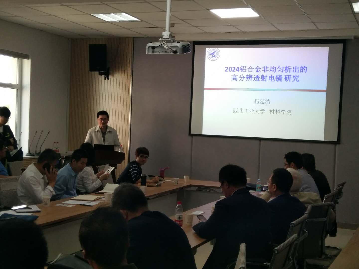 杨延清教授介绍了采用高分辨透射电镜(HRTEM)研究人工时效2024铝合金在微观位错、界面等处的非均匀析出方面研究成果。