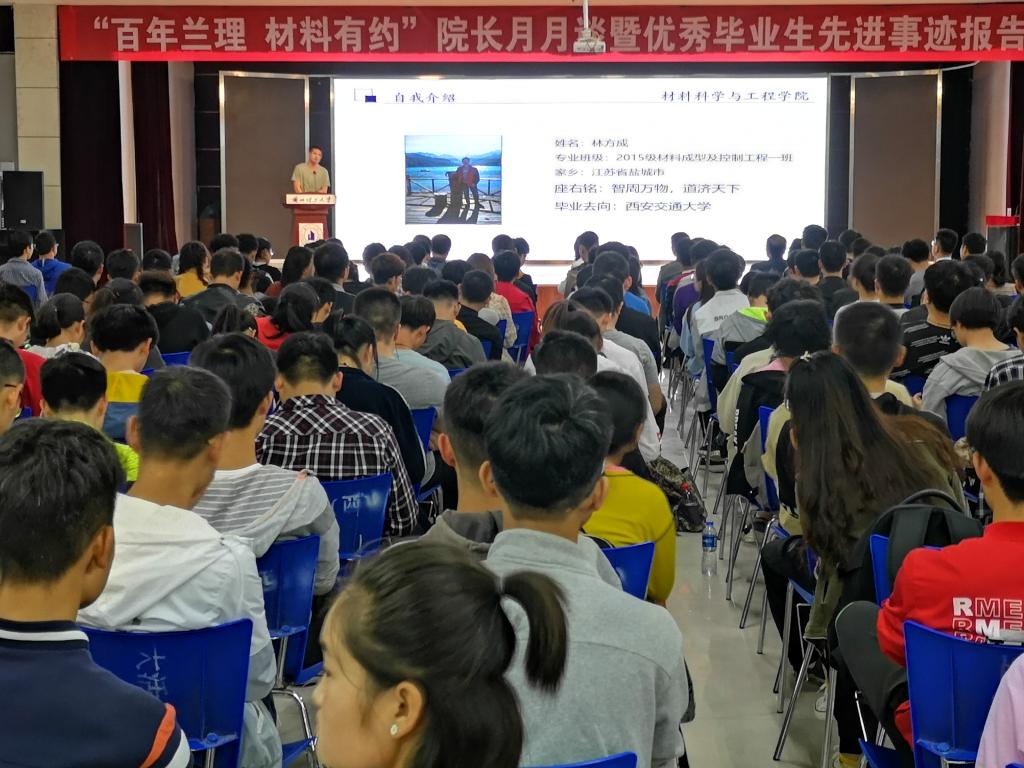 为认真落实《关于加强和改进高校领导干部深入基层联系员工工作的通知》精神,2019年5月13日晚,js33333金沙线路检测在js33333金沙线路检测彭家坪校区老员工活动中心举行“百年兰理 材料有约”经理月月谈活动,js33333金沙线路检测副经理刘德学,副书记王祎敏及全院八百余名师生参加了本次活动。