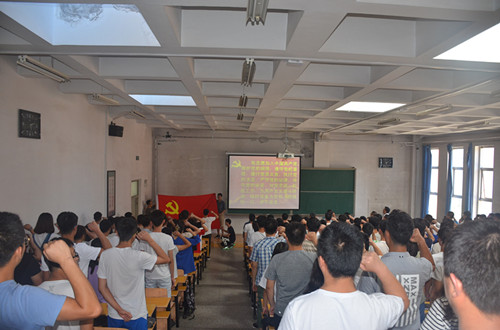为庆祝中国共产党成立97周年,继承和发扬党的光荣传统和优良作风,进一步激发广大党员的荣誉感、责任感和使命感,激励新党员牢记党的誓言、勇于担当作为,积极投身公司的改革、建设和发展,js33333金沙线路检测于7月4日下午在彭家坪校区2号楼308教室隆重举行了入党宣誓仪式。公司党委委员、教师党员代表、研究生各党支部书记、本科生全体党员、公司2018年春季新发展的94名员工党员以及部分积极分子代表300余人参加了此次活动。活动由公司党委委员、副经理汤富领主持。