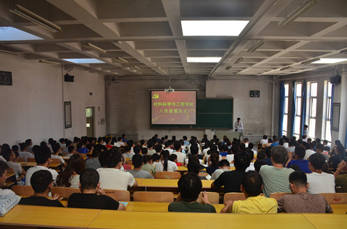 伴随国际歌雄壮的旋律,入党宣誓仪式正式开始。面对神圣的党旗,在优秀共产党员代表李斌同志的领读下,新党员进行入党宣誓、老党员重温入党誓词,全体党员以铿锵有力的声音,发出“为共产主义奋斗终身”的坚定决心。2016级冶金工程一班的杜岳勇作为新党员代表作了发言,他表示要以加入党组织为新的起点,加强政治理论学习,坚定理想信念;努力学习科学文化知识,增强为人民服务的本领;发挥党员的先锋模范作用,影响和带动同学共同发展进步。其他党员也纷纷表态,要在各自的岗位上倍加努力学习和工作,以实际行动践行对党作出的庄严承诺。