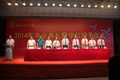 杜雪岩经理致辞,他向毕业生表示祝贺,希望同学们不要丢弃理想和操守,身处逆境更要发奋努力,继续前行,树立终身学习的理念,不断超越自我,无论身处何地,母校作为同学们的永远的家,欢迎大家常回来看看。杜经理、兰书记以及部分老师向644名获得学士学位的毕业生授予学位、正冠拨苏、合影留念。