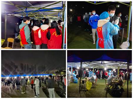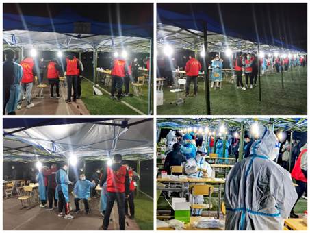 病毒虽无情,人间有大爱。一声令下,所有党员及志愿者冲锋在前、主动担当,搭帐篷、运物资、组织员工、维持秩序,高效配合医护人员顺利完成了全院三千多名员工的第一轮核酸检测,彰显了青春的蓬勃力量。“这是我们应该做的”、“不冷,不累”、“保证完成任务”是从他们口中得到的最多的反馈。寒夜漫漫,一群斗志昂扬、意气风发的孩子们,选择温暖这座城。他们卖力的身影,让我们深受感动、倍感鼓舞,这就是材料学子反馈给工大的忘我和奉献精神,这就是材料人的样子!