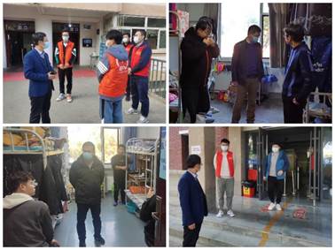 公司领导在网格化管理体系中担任楼层长的角色,走访宿舍过程中对同学们进行疫情防控的宣传引导,提高了同学们的思想认识,坚决不造谣、不信谣、不传谣,积极配合公司做好核酸采样等工作。对于同学们的线上学习情况和日常生活,各位领导也非常关心,亲切地与同学们交流,询问同学们近期是否积极参加线上教学活动,并特意强调生活上若有什么困难一定要及时向辅导员或班主任反映,帮助大家解决。除此之外,李书记对同学们也做出要求,疫情期间一定要注意个人及宿舍卫生,做好通风,垃圾及时处理,确保宿舍干净整洁,才能有效避免病毒传播。王祎敏副书记强调,特殊时期,同学们要正确认识疫情,学会自我调节,用健康平和的心态积极面对疫情带来的压力,要相信在全社会的共同努力下,疫情终将被驱散。朱福良副经理对同学们讲到,疫情期间尽量减少出门,尤其不能进行聚集性体育活动,可以在宿舍适当进行一些体育锻炼,增强身体素质,提高免疫力,防止生病。刘德学副经理指出,提倡同学们在打饭时自带饭盒,这样做一来比较环保,二来比较省钱,三来比较健康,同时严禁将饭菜带到教室、实验室等地方。各位领导对公寓楼门口值班的党员志愿者们也表达了慰问,对他们认真负责的表现给予肯定和感谢,嘱咐同学们在执勤过程中要注重自身安全,天气比较冷,也要多穿衣服,不要着凉。
