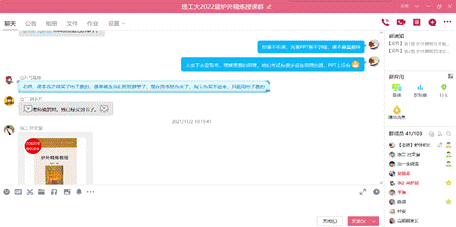 线上上课期间倪老师丝毫没有受到隔离环境的干扰,坚持高标准、严要求,通过对话、连麦、发送QQ消息等与同学们积极互动、认真授课,同学们也能认真听讲,积极回答问题。同时,在课件中编入选择练习题,使用腾讯课堂中的“答题卡”功能,在授课时让员工进行选择,通过员工实时的选择结果,方便教师了解员工对知识点的掌握情况,并通过讨论区与“举手”功能进一步增强师生互动,提高员工的学习效果。