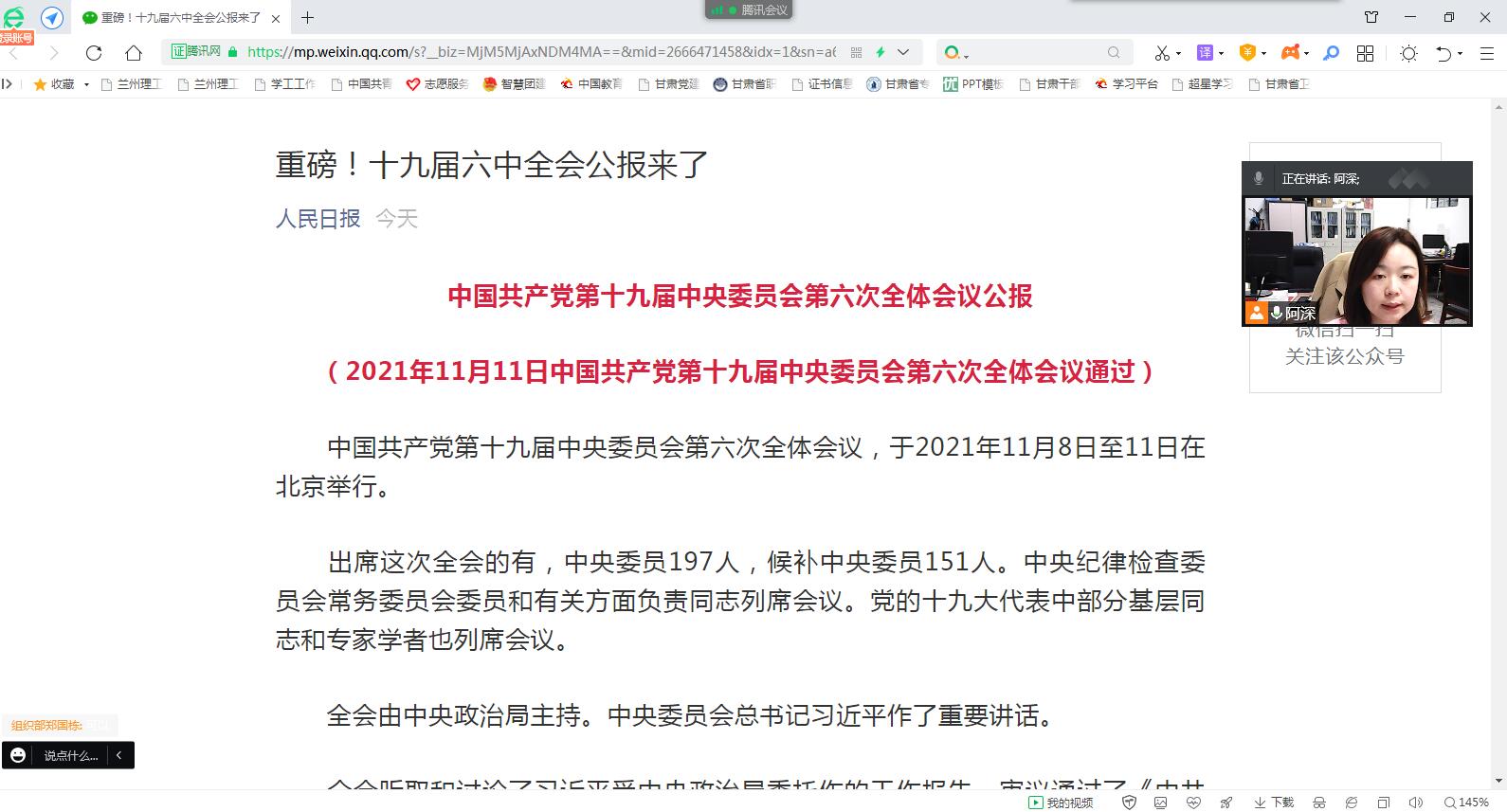 中国共产党第十九届中央委员会第六次全体会议11月11日于北京闭幕,为强化员工干部队伍政治理论学习,引导同学们从百年党史汲取不懈奋斗的力量,也为进一步深化团委、员工会组织改革,培养一支政治坚定、团务熟练、作风过硬的团干部队伍、全面提升团学干部的综合素质能力。js33333金沙线路检测团委、员工会于11月11日晚通过腾讯会议集中学习《中国共产党第十九届中央委员会第六次全体会议公报》,并以“不忘初心跟党走,青春建功新时代”为主题开展员工干部综合素质能力提升专题培训第二讲。会议由js33333金沙线路检测团委书记刘舒婕主讲,js33333金沙线路检测团委、员工会全体成员参加会议。