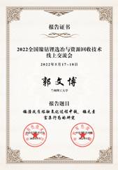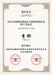 2022年5月17日-18日,由中国有色技术平台主办,北方中冶(北京)工程咨询有限公司和省部共建有色金属先进加工与再利用重点实验室承办的2022年全国镍钴锂选冶与资源回收技术交流会议在线上召开。杜雪岩教授课题组团队师生十余人参加了本次会议,李彬、郭文博、马卫星等3名师生分别在大会上做了“熔融氧化镍渣中磁铁矿晶体的非等温析晶生长及其形貌调控”、“镍渣改质熔融氧化过程中铁、镍元素富集行为的研究”和“铅银渣中银元素在熔化-烟化过程中物相演化规律研究”的学术交流报告。冶金固废综合利用团队师生充分利用本次参会机会,积极宣传团队近年取得的科研学术成果,并与知名专家学者沟通交流,进一步促进了团队的科研水平提升。