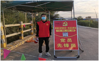 2020级材料成型及控制工程专业马万才通过报名参加“返乡老员工向社区报道”志愿服务活动,积极响应村内号召,成为了一名抗疫志愿者,为抗击疫情贡献自己的青春力量。7月16日他的家乡甘肃省武威市古浪县土门镇核检出了一例阳性,全镇立即实行封控措施,他说:“作为一名老员工预备党员,在国家有需要的时候,身上更是多了一份责任和义务。”在他看来参与疫情防控工作就是一堂生动的社会实践课,这堂课更接地气,同时也更有意义和价值。志愿服务仍在进行中,作为一名预备党员,他会时刻牢记自己党员的先锋模范作用,全心全意服务于人民,他相信家乡,也相信土门镇人民带着土门镇八步沙六老汉的“困难面前不低头,敢把沙漠变绿洲”的精神,众志成城,科学防护,共克时艰。