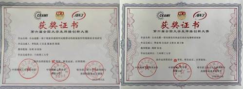 经校赛选拔,公司有两项作品推荐参加国赛。俞伟元、朱明、周辉三位老师带队前往洛阳参赛,同时俞伟元、朱明老师担任大赛评委。通过作品测试、选手现场答辩、专家提问评审等环节的激烈比赛,公司朱明老师指导李凯凯、王宝龙等同学的参赛作品《基于视觉传感的窄间隙摆动钨极氩弧焊焊缝跟踪系统研究》获二等奖1项,周辉老师指导曹庞博、白泽龙等同学的参赛作品《管内强化传热涂层的丝电爆法制备》获三等奖1项。