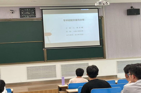 在学术经验交流与分享中郎亚鹏和张莹结合自己的学习经历向同学们分享经验:在掌握课程的同时,走出去看看外面的世界,开拓自身眼界,平时多看文献;同时又向同学们提出两点期望:第一,期望同学们扩大知识面,提升专业技能;第二,期望同学们注意把自己的所学专业和社会需求相结合起来,注重实际技能的培养。