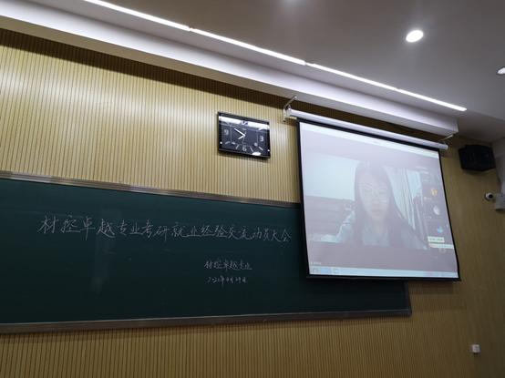 2017级材控卓越班学风优良,团结进取,考研上线率58.06%,录取率58.06%。其中党员10人,8人考入理想院校深造,2人签约理想单位。因目前仍在宁夏共享集团实习,为了鼓励和动员学弟学妹们及早确定目标,制定计划,此次交流采取线上方式,虽然隔着一面屏幕但丝毫不影响学长学姐们将个人的学习经验、奋斗经历输出给在场的所有同学。整个活动期间气氛活跃,互动良好。