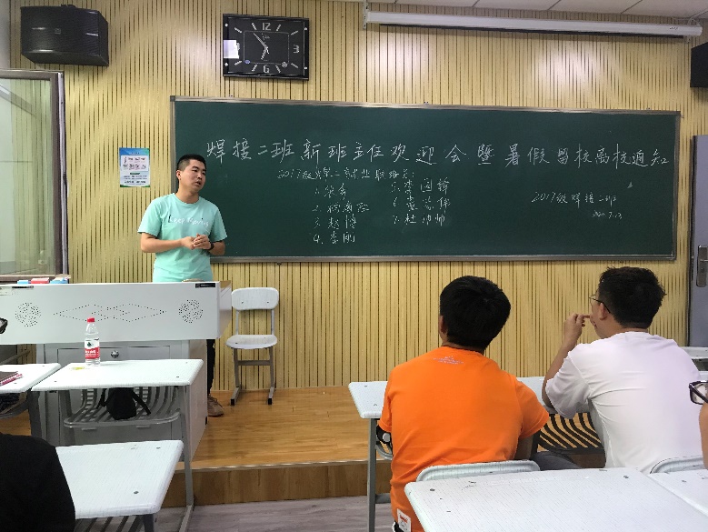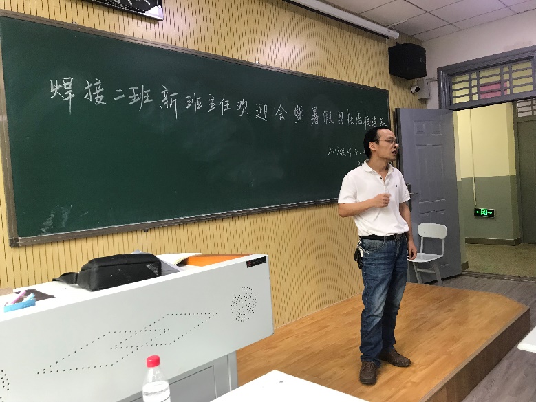 根据js33333金沙线路检测本年度重点工作任务,从秋季学期起公司除一年级外其他年级班主任由专业老师担任,大三年级辅导员周玉兰老师于7月13日下午1号楼203给焊接二班同学们介绍了新班主任张忠科专业老师,并热烈欢迎张老师加入焊接二班的大家庭。
