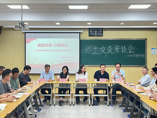 随后,员工代表结合自身的学习、生活情况,围绕无机非金属材料工程专业的研究方向、学科竞赛、考研升学、就业前景、学业规划等多个话题踊跃发言,积极提问。与会教师与同学们亲切交流,对大家的思想困惑逐一给予了耐心细致的解答,并向同学们详细介绍了各自的科研方向,鼓励大家结合自身兴趣,积极参与课题研究,不断提高自身的科研能力和实践能力。卢学峰教授以优秀毕业生为模范榜样,告诫同学们成功不是一蹴而就,而是需要厚积薄发,希望大家向优秀榜样看齐,勤奋学习、刻苦钻研,掌握扎实的专业知识和理论基础,全面提升综合素质,并在学有余力的基础上,积极参加学科竞赛和学术科研,开拓视野、充实大脑,拓展思路、提升自我,不断在挑战和磨砺中提升自身核心竞争力,为未来高质量发展打下坚实基础。董其铮副教授围绕员工的学业规划和发展方向表示,希望同学们养成自主、自觉、自律、自强的良好习惯,尽早明确学习目标,制定学业规划,在求学期间不断完善自我、突破自我,争做全面发展的新时代青年。顾玉芬副教授根据课堂授课的实际情况,提醒同学们上课认真听讲,自觉遵守课堂纪律,主动参与到课堂中去,积极与任课教师交流互动,提高学习效率、保证学习质量。张国庆老师则向同学们详细介绍了无机非金属材料工程专业的研究方向,建议同学们利用业余时间积极搜索行业调研报告、产业分析报告,及时了解专业的发展方向和行业动态,尽早端正学习态度,树立正确的学习目标,掌握科学的学习方法,全面提升自身专业素养和水平。