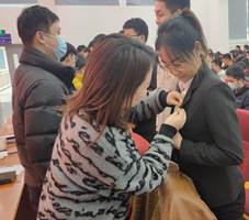 入党宣誓仪式在国际歌雄壮的旋律中拉开帷幕。鲜红的党旗为现场渲染出庄重的气氛,面对神圣的党旗,在公司组织员杨志忠同志的带领下,全体党员举起右手庄严宣誓,以铿锵有力的声音抒发对党忠诚的决心。宣誓后,公司党委领导以及各党支部书记为新发展党员佩戴党徽并嘱托他们要严格要求自己,做一名合格的党员。