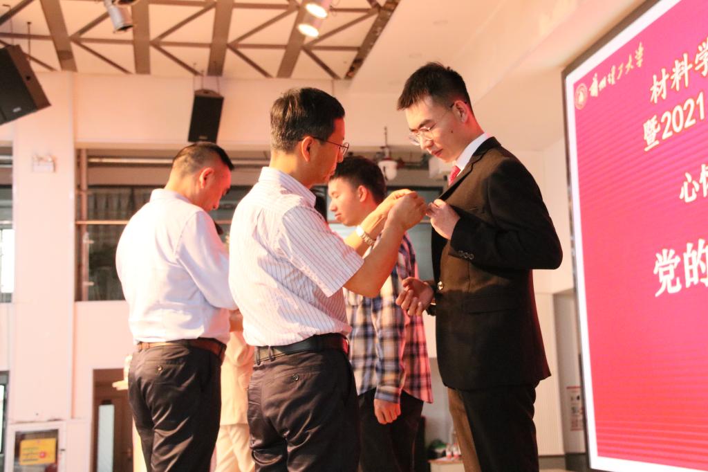 活动在激昂的《国际歌》中拉开序幕,开展了老党员为新党员代表佩戴党徽和全体党员宣誓仪式,在铿锵有力的誓言中,全体党员坚定不断强化党员意识、践行党员义务、发挥党员作用的信念。
