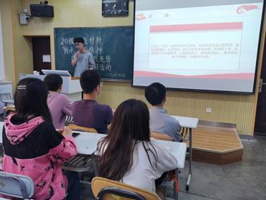 此次团日活动由团员代表宋俊峰同学主讲,他为我们讲述了在100多年前那个黑暗喑哑的时代,中国青年如何以热血之心书写爱国之志的。如何在旧中国发出青涩却又坚定的呐喊。回顾了五四运动之后,宋俊峰又为我们介绍了当代优秀团员代表。通过观看视频让同学们巩固了红色革命、五四运动的知识,与此同时激励同学们更加努力奋斗。