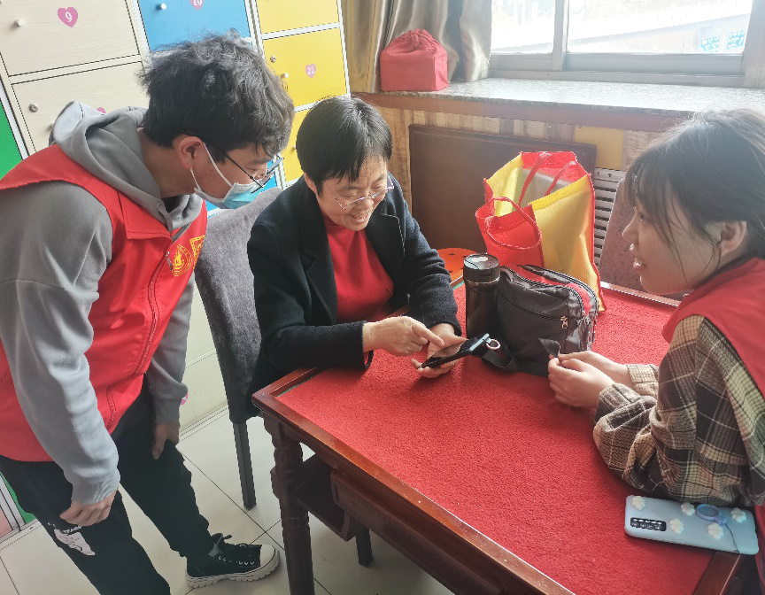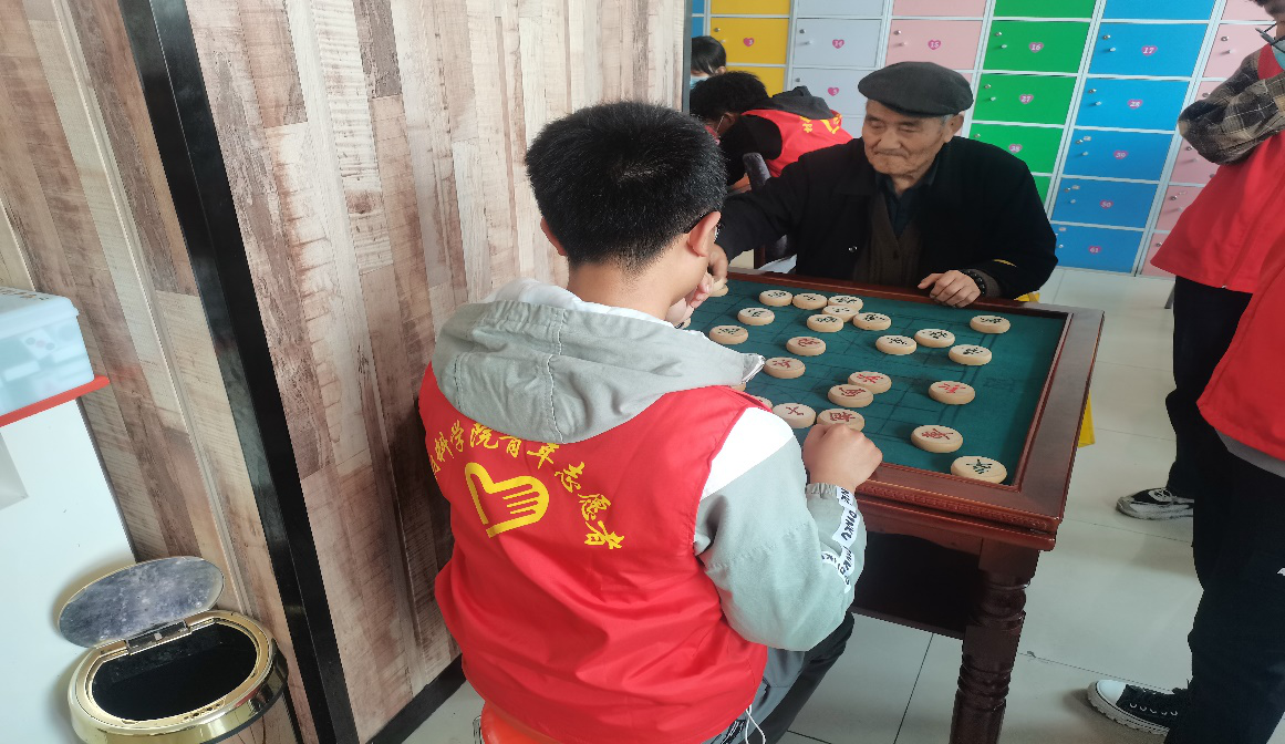 第二志愿小组在休息区陪老人们聊聊天,拉拉家常,有的给老人讲讲笑话,有的在教老人怎么用手机里的一些软件,有的则听着老人回忆他们以前的故事,也顺便讨论了现在。志愿者与老人们的亲切交流,让老人们感受到了亲人般的关怀。