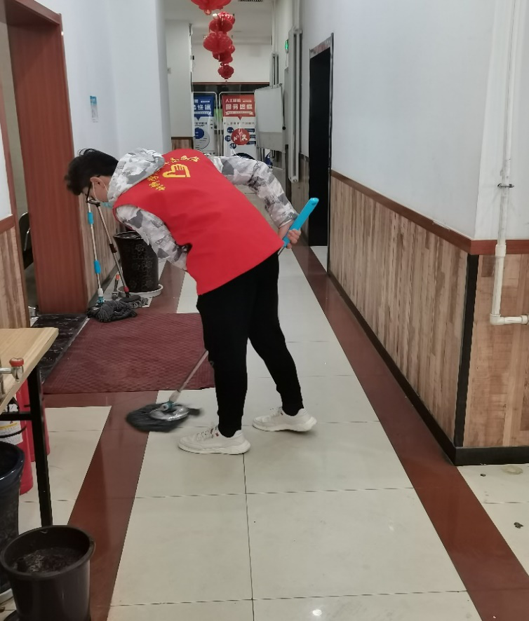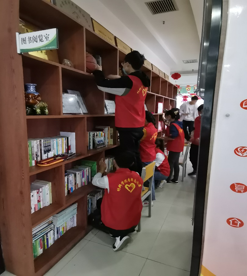 志愿服务于上午九点半开始,在负责人的安排下,同学们分为三小组,分工明确,志愿服务活动正式开始。第一志愿小组在颐圣乐园的大厅里打扫卫生,扫地、拖地、收拾书架及货架等,为老人们创造了一个干净舒适的休息环境。
