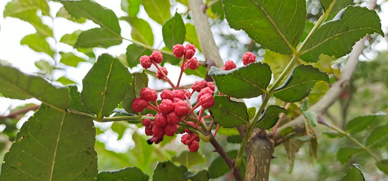 图为村民种植的两种品种的花椒,左为七月椒、右为大红袍(通讯员 陈之鸿 摄)