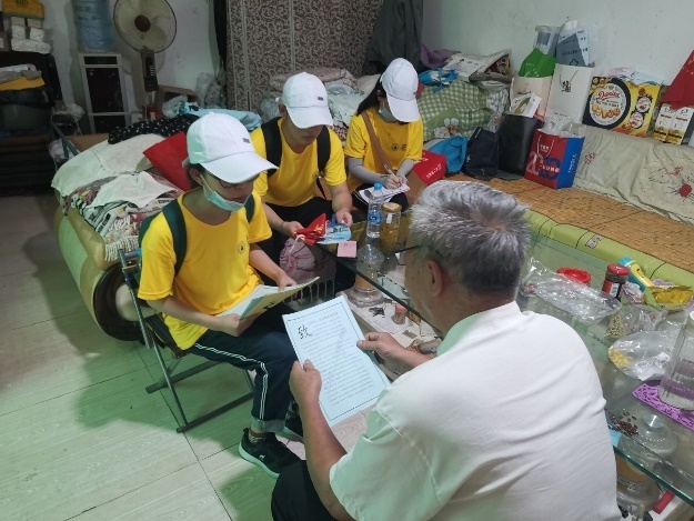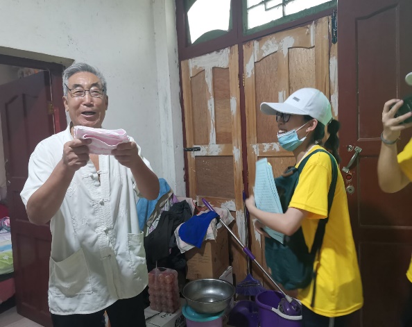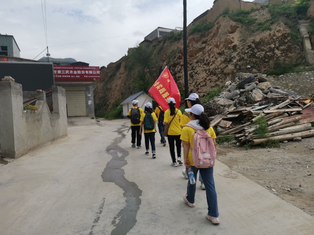 图为实践队队员在汉王镇走访,发放小礼品(通讯员 付蓉佳 摄)