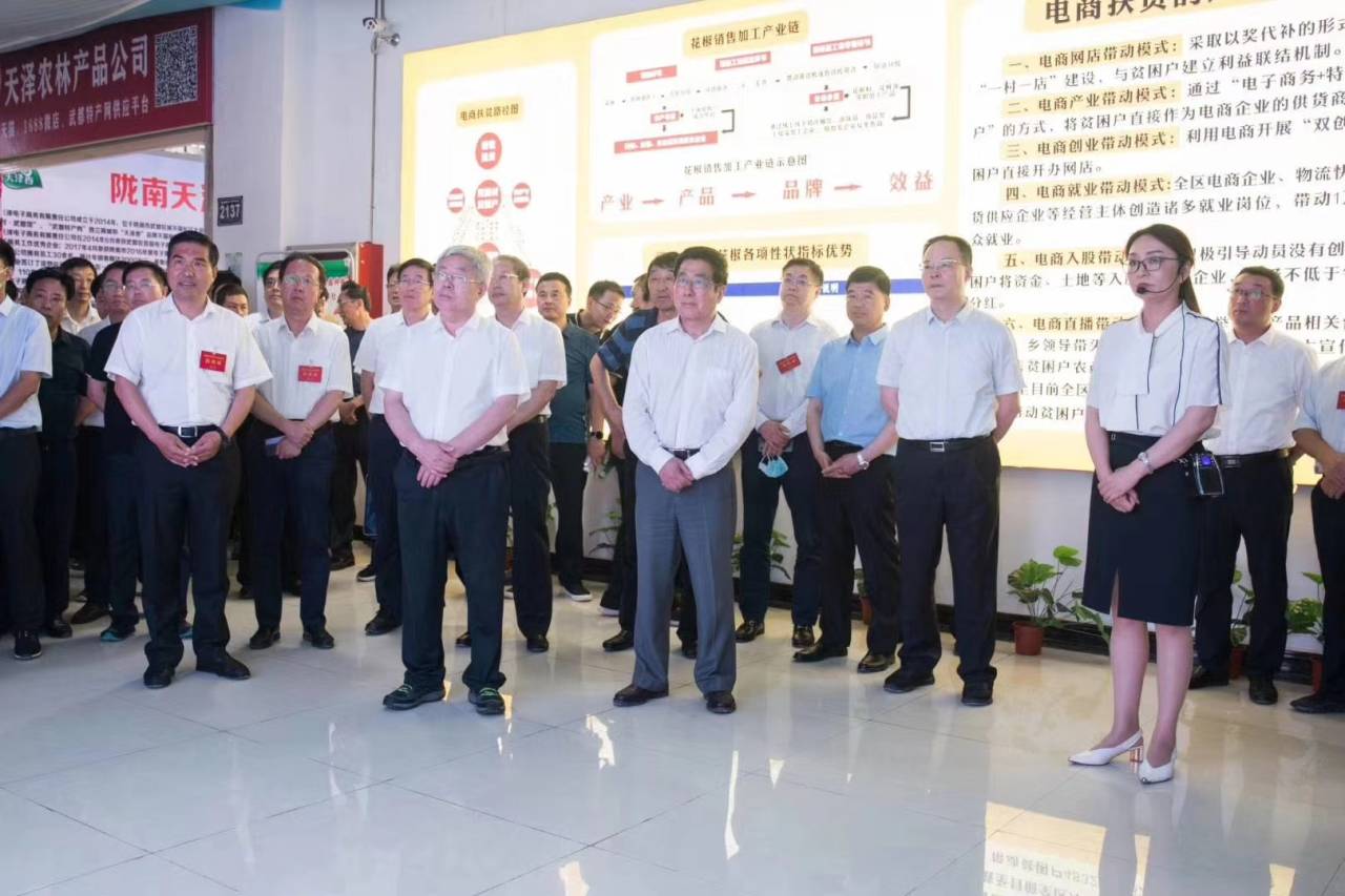 图为实践队直播时巧遇国务院扶贫办主任刘永富主任和省委书记林铎书记等领导参观花椒会 (通讯员 任晏霆 摄)