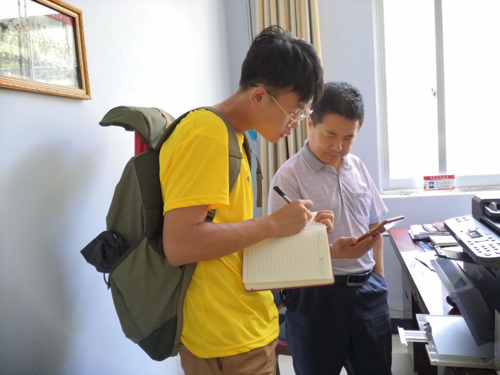 图为科技局贾主任为实践队对员提供有关资料 (通讯员 郭亚琦摄)