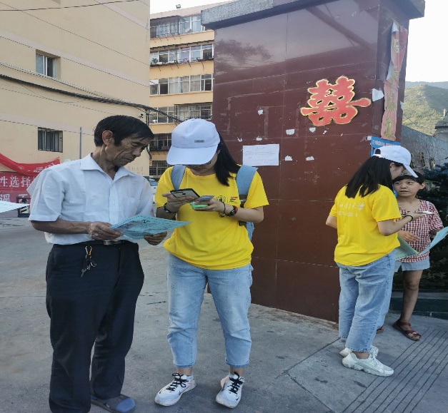 7月28日下午,实践队员在武都街头,就科技兴农对脱贫致富有多大帮助进行问卷调研,深受市民支持。