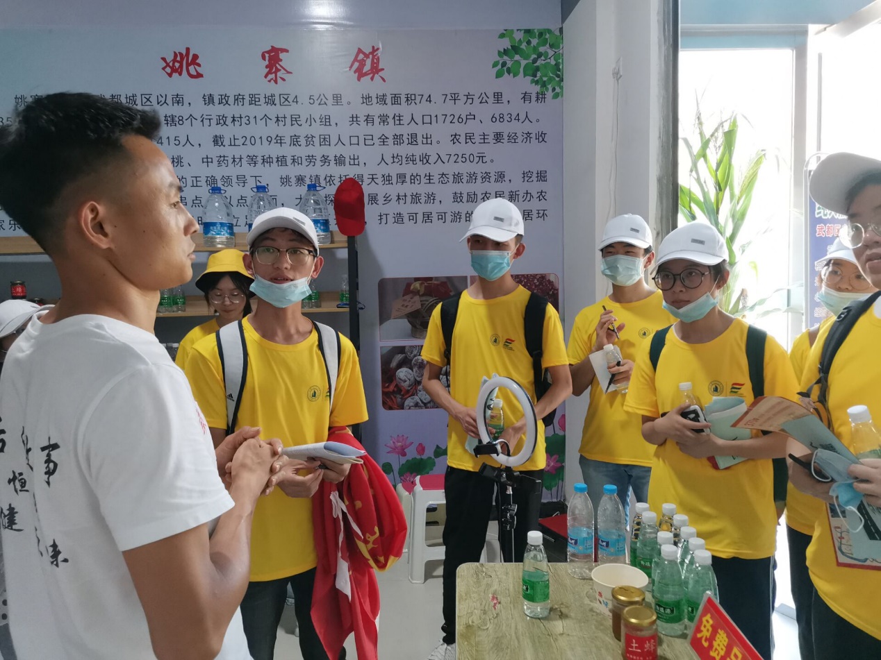 7月27日上午,实践队为优化调研进度,提升调研效率,在经过带队老师同意后,决定兵分两路,一路在带队老师刘舒婕老师带领下前往团委、科技局、扶贫办切实了解武都县近年来扶贫工作及科技兴农政策的有关情况,并向有关部门取得相关的理论数据作为实践调研的参考;另一路则在实践队副队长带领下前往花椒会展帮助直播带货,实现春春助农带货,科技助农致富的目标。