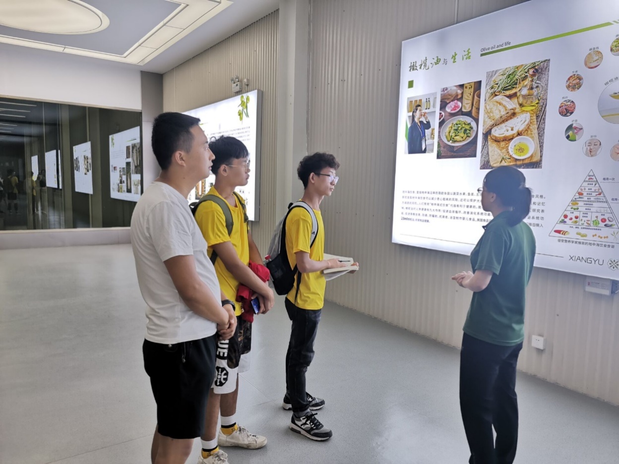 图为工作人员为实践队队员介绍油橄榄产品 (通讯员 卢家良 摄)