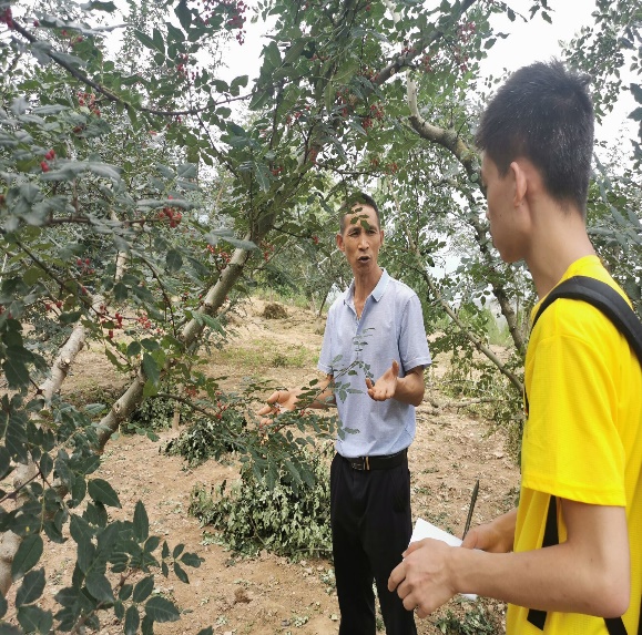 图为实践队队员向村支书了解花椒种植情况 (通讯员 范雪龙 摄)