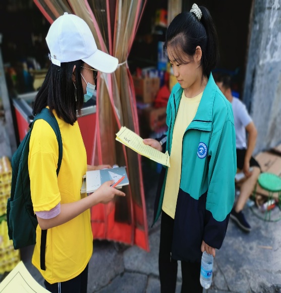 图为实践队队员在武都街头进行发放问卷调查(通讯员 朱伟成 摄)