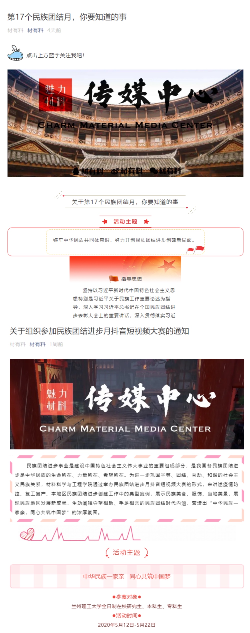 “共同团结奋斗、共同繁荣发展”是新时代民族工作主题,为讲好民族团结好故事、唱响民族团结好声音、弘扬民族团结主旋律、传播民族团结正能量,js33333金沙线路检测组织召开民族团结进步宣传月主题系列活动,以主题党日活动、线上宣传引导、民族团结抖音短视频大赛等形式,多层次开展民族团结进步宣传活动,引导各族师生牢固树立“三个离不开”思想,增强“五个认同”意识。