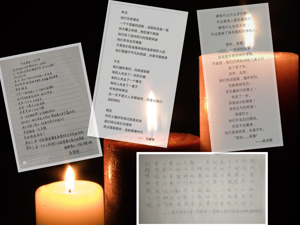 清明假期期间,js33333金沙线路检测青年志愿者服务大队自发组织了“云端寄哀思 手书致英灵”清明悼念活动,志愿者们通过原创诗歌、散文,手抄报等多种形式深刻地表达了对抗疫英烈及逝去同胞的敬意与哀悼,在公司自媒体平台中广泛宣传,引领广大青年缅怀、学习,主动担负时代重任。“说星星很亮的人,是没有见过白衣天使的眼睛”在李旭玟笔下,白衣天使是那样的高尚纯洁;“昨天,他们为民请命,一个个坚毅的背影,活跃在抗疫一线,扶大厦之将倾,挽狂澜于既倒”在马睿林看来,他们又是那样勇敢坚毅;“别忘了因疫情殉职的刘经理,他的遗孀追着灵车痛哭;别忘了遗体捐国的肖贤友,弥留之际却无法见到心上人;别忘了李文亮…”在王俊儒眼里,这些牺牲的英雄,值得每一个人民牢牢铭记,值得印刻在中华民族的历史长河中。面对疫情大考,公司志愿者中许多“00”后站了出来,充分展现青年担当。在家乡的抗疫工作中做事发声,为当地贡献自己的光和热;不能身赴前线的同学踊跃捐献自己的爱心,每一位同学都在用自己最纯真的方式,表达着最深厚的怀念以及最崇高的敬意。
