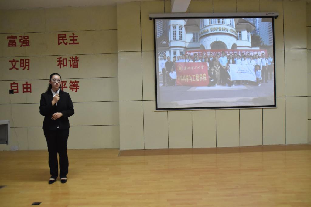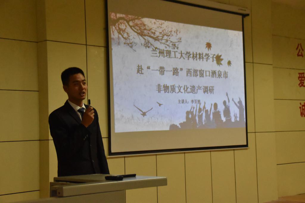 首先17级无机非金属工程的李至堃同学介绍了js33333金沙线路检测材料学子赴“一带一路”西部窗口酒泉市非物质文化遗产调研,就调研活动进行了介绍:参观丝绸之路博物馆、采访当地“地蹦子”非物质文化继承人、访问黄泥堡等,谈到实践感悟时,他说:“我们都有自己的节奏,不要被外界所影响,一步一步完成自己的目标,厚积薄发,结果肯定不会差”。17级材控卓越班的郭贞山为大家讲述兰理材料学子赴兰州蚂蚁森林进行暑期社会调研;调研小队赴武威民勤亲探蚂蚁森林现状,了解民勤治沙措施以及中华人民共和国成立70周年以来的治沙成就。18级焊接一班毕志伟为大家介绍兰理材料学子奔赴庆阳实践活动;走进工厂,实践方出真相、走入南梁,追溯红色记忆、走上街头,到处都有调研团队的身影;最后,17级冶金工程二班的郭颖雪为大家分享“百年兰理 丝路红柳”为主题的暑期海外社会实践项目,她讲道:“马来西亚之旅,让我感受到国外大学的文化教育理念,增长见识。世界那么大,值得去看看,这次学习之旅不仅拓宽了我的国际视野,也更让我深知自己英语水平的不足,同时也更加坚定了我继续学习进步的决心”。