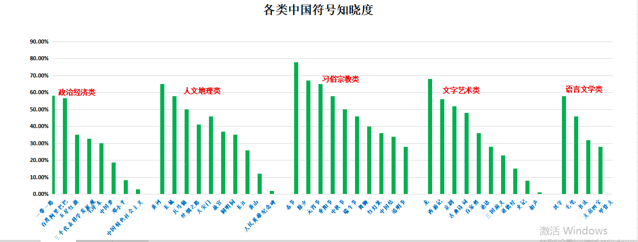 图1 各类中国符号知晓度调研数据统计表