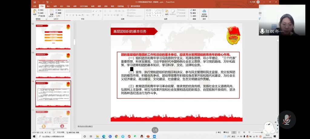为进一步加强和改进新时代团员教育管理工作,保持和增强团员先进性和光荣感,根据习近平总书记在党的十九届六中全会上的重要讲话和会议精神,学习十九届六中全会公报和《中共中央关于党的百年奋斗重大成就和历史经验的决议》,全面推进“学党史、强信念、跟党走”学习教育,培养有理想信念、政治觉悟、责任担当的团干部,打造一支政治强、团务精、作风好的团支书队伍,全面提升员工干部综合素质能力,充分发挥共青团作为党的助手和后备军的作用,坚定团员青年跟党走的决心,js33333金沙线路检测团委组织部于近日开展新生团支书基础团务专题培训会,以“加强思想建设,夯实团务基础”为主题,开展员工干部综合素质能力提升专题培训第三讲。会议由js33333金沙线路检测团委组织部马文蕊和2020级功能材料团支书王煜同学主讲,js33333金沙线路检测团委21级团支部书记、团委组织部全体同学参加。