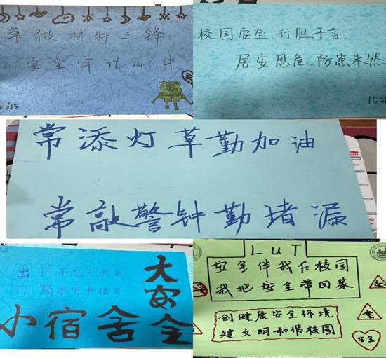 安全是人生命之外的最大需求,大公司园安全关乎每个同学的切身利益,也需要每个同学自觉遵守制度,用实际行动来维护校园这一片安全净土。“守文明 护安全”宿舍文明公约海报设计活动中,每个宿舍都自觉约定宿舍文明行为,明确个人职责,守护宿舍人身和财产安全,制定一份专属的“宿舍文明公约”;在 “口号要响亮 安全放心上”校园安全宣传标语征集活动中,同学们集思广益,写出一条条诙谐又朗朗上口的安全口号,并实践于行,用行动努力营造良好的校园安全文明氛围。