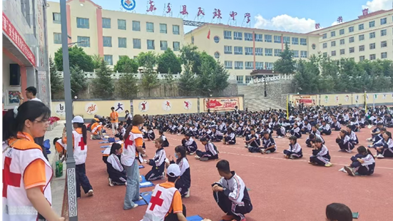 图为实践团队与js33333金沙线路检测红十字会在东乡民族中学开展急救与心理融合式教学实践
