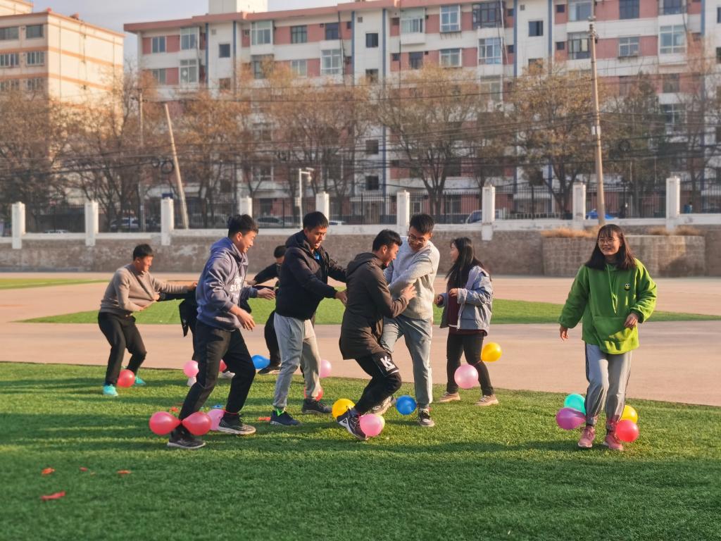 首先以“踩气球”的游戏勾起了同学们的积极性;游戏中每一个部门的每一位同学都在自己腿上绑定四个气球,以团体形式在规定的区域内互相踩气球,踩爆气球者出局,最后留下场上腿上仍然有气球的10人获胜。机智的团队战略,以及队友间的互相信任是比赛成功的关键。