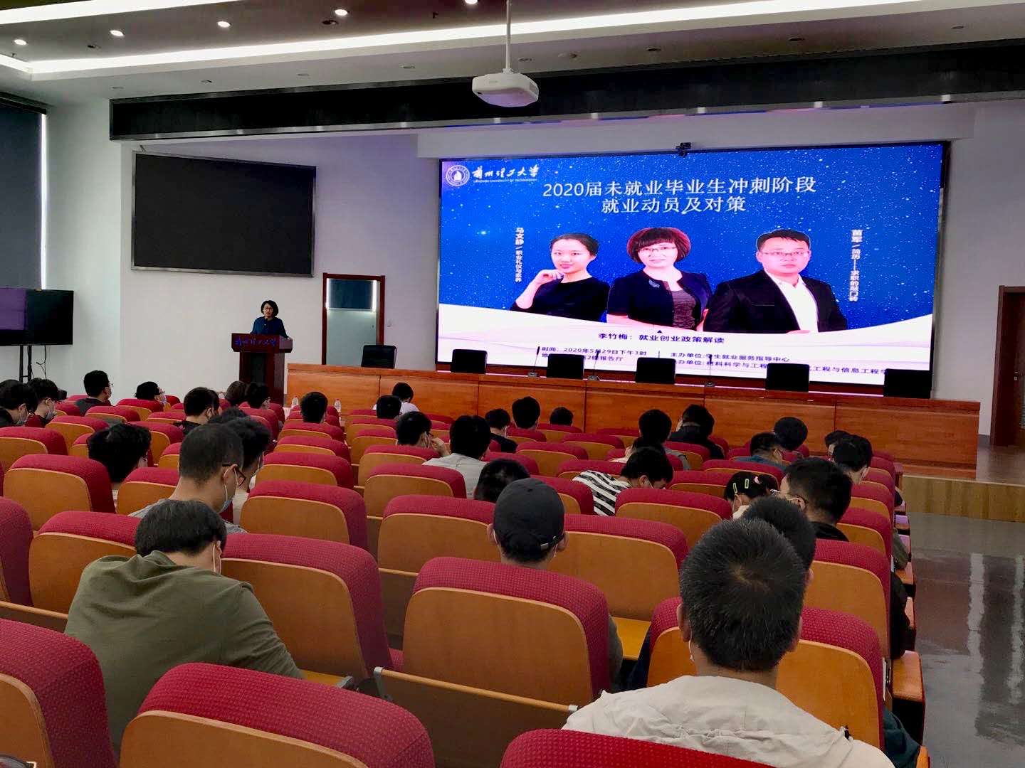 为进一步做好2020届毕业生就业工作,转变员工就业观念,促进员工充分就业。5月29日,js33333金沙线路检测和电信公司于兰工坪校区图书馆二楼报告厅联合举办2020届未就业毕业生冲刺阶段就业动员及辅导专题会,公司就业指导服务中心李竹梅主任、马文静副科长以及苗军老师就当前就业形势、求职对策、求职面试素养与礼仪、简历求职的敲门砖等方面进行辅导。js33333金沙线路检测副书记王祎敏主持会议。两公司未就业毕业生及公司领导、辅导员参会。