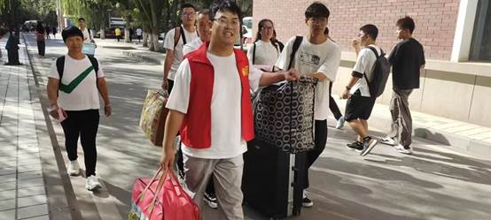 早晨七点多,青年志愿者们就已经就位,等待来自四面八方的莘莘学子。支部书记王祎敏同志要求全体党员、积极分子遵守纪律,不擅自离岗;言行文明,以昂扬的精神风貌迎接新生;熟悉公司、公司基本情况,耐心细致解答新生及家长的问题;遇特殊情况或问题第一时间反馈老师。广大党员同志及支部入党积极分子积极响应,怀揣着热情与期待,为新生提供志愿服务。他们或为新生搬运行李、或进行文明引导,一句句“我帮你拿”,一声声“请叔叔阿姨放心”,让新生和家长感受到了兰理工的热情和温暖。这一个个“红马甲”不辞辛苦,不惧腿脚酸痛,甚至主动连续服务四五个小时不换班,成为秋日校园里最靓丽的风景线。